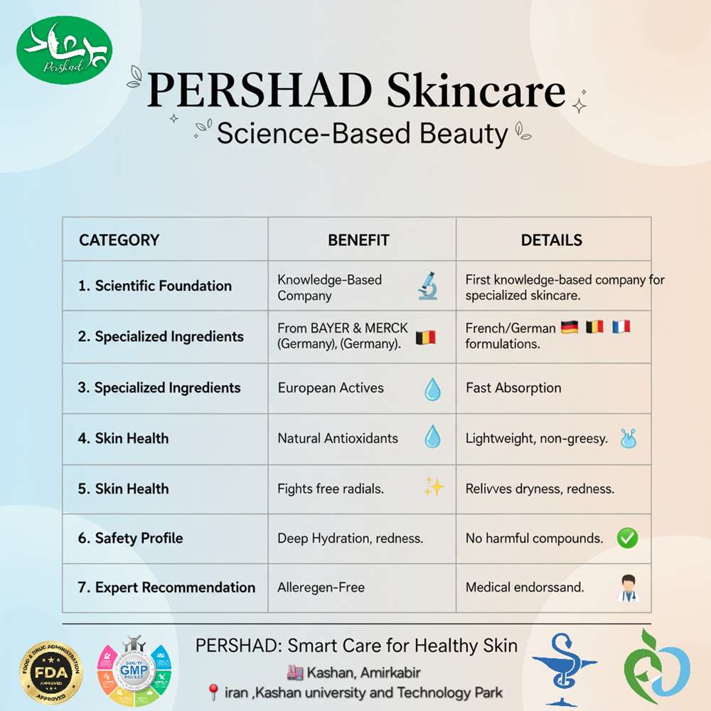 برند پرشاد اولین شرکت دانشبنیان محصولات فوق تخصصی مراقبت از پوست و عضو رسمی پارک علم و فناوری دانشگاه می باشد.