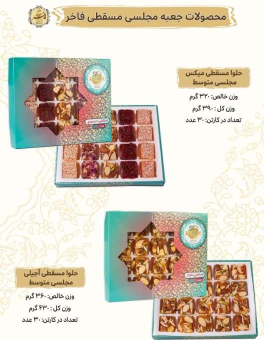 این مجموعه همچنین با راهاندازی کارگاه ساخت جعبههای چوبی اختصاصی، گامی ماندگار در جهت زیبایی، کیفیت بستهبندی و ارزشافزوده محصول برداشته و امروز یکی از تولیدکنندگان شاخص مسقطی سنتی در کشور به شمار میرود.