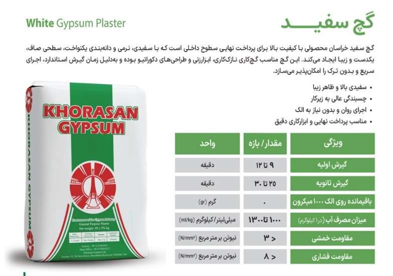 در اوایل دهه 1330 خورشیدی بنیان گذار شرکت گچ خراسان حاج سید باقر اورعی میرزمانی با هدف تولید و عرضه گچ ساختمانی در خراسان، به تحقیق و تفحص راجع به منابع و معادن سنگ گچ در نقاط مختلف این استان پهناور پرداخت. در طی چندین سال فعالیت در زمینه اکتشاف این معادن، مناطق مختلفی را مناسب یافت و در هرکدام از آنها به ترتیب به استخراج سنگ گچ و تولید گچ بطور آزمایشی پرداخت تا اینکه شرکت گچ خراسان (سهامی خاص) در سال 1353 با همکاری شرکت معروف و با سابقه Babcock-BHS در منطقه رباط سفید در 70 کیلومتری مشهد تاسیس گردید. سپس در سال 1366 با تغییراتی در خط تولید گچ، ظرفیت تولید گچ تا 1000 تن در روز افزایش یافت. با اجرای طرح های توسعه بین سال های 1364 و 1386 علاوه بر افزایش ظرفیت تولید گچ سفید به 3000 تن در روز محصولات جانبی دیگر شامل گچ عاج، دیواره های پیش ساخته و گچ ممتاز تولید گردیده است. اکنون با سرمایه گزاری جدید، شرکت گچ خراسان مجددا در راستای رسیدن به افق های جدید بوسیله تولید محصولات برتر و دستیابی به بازارهای جدید داخلی و خارجی قرار داد. در این راستا، شرکت گچ خراسان همواره بدنبال استخدام ماهرترین و پرانگیزه ترین افراد جویای کار در سطح کشور می باشد.